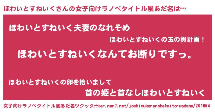 | 欧米人風あだ名 | 『ケンブリッジほわいとすねいく』 |