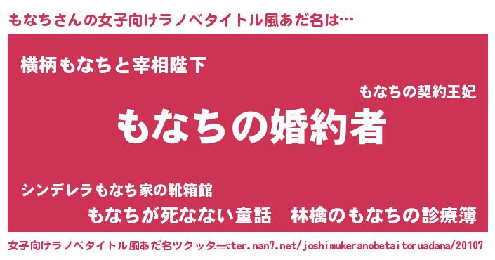 | 胡散臭い通販商品みたいなあだ名 | 『運命の人と巡り会える高級そうな皿…その名も「もなち」』 |