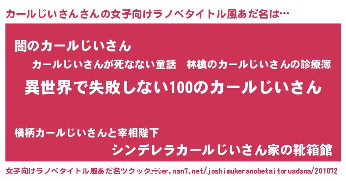 | ヘコむあだ名 | 『カールじいさん(遠い目)』『カーを』 |