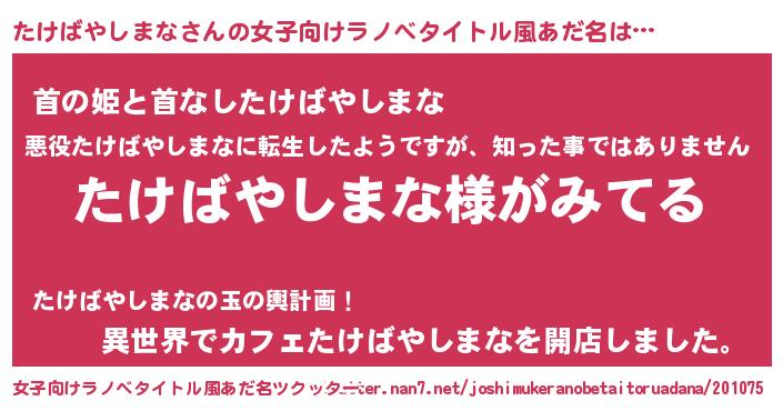 | 男性向けラノベタイトル風あだ名 | 『たけばやしまなの嫁は女の子じゃないと思った?』 |