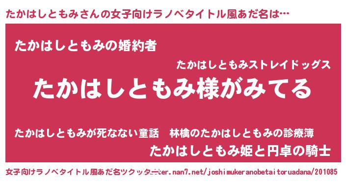 | 男性向けラノベタイトル風あだ名 | 『たかはしともみの嫁は女の子じゃないと思った?』 |