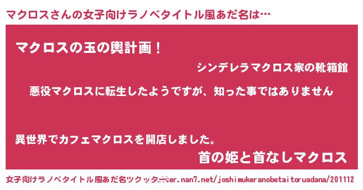 | 男性向けラノベタイトル風あだ名 | 『この素晴らしい世界にマクロスを!』 |