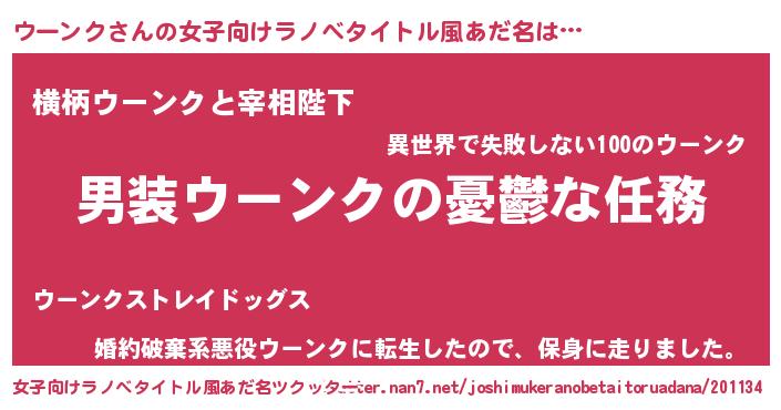 | 男性向けラノベタイトル風あだ名 | 『うちのウーンクが世界を掌握している!』 |