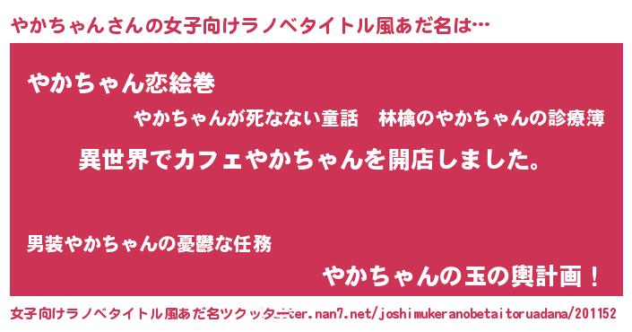 | ピコ太郎風あだ名 | 『ピコヤ郎』『ヤヤ太郎』『ヤカ四郎』 |