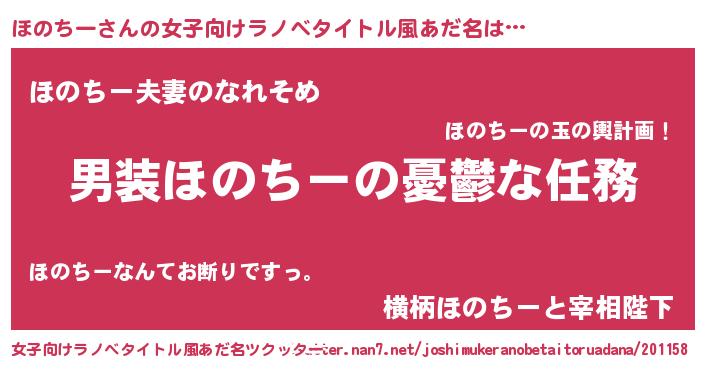 | 男性向けラノベタイトル風あだ名 | 『うちのほのちーが世界を掌握している!』 |