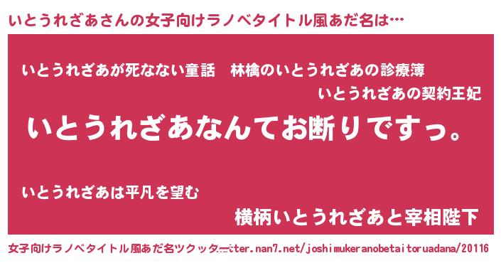 | 意味不明あだ名 | 『自称いとうれざあ』 |