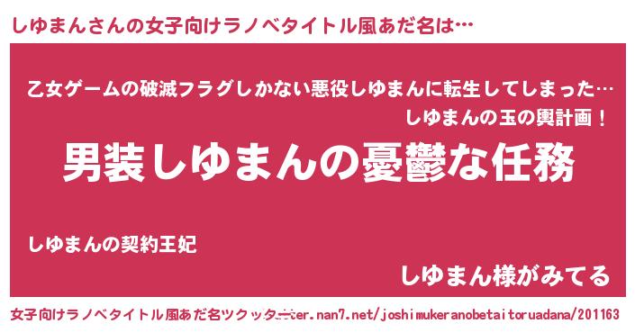 | 胡散臭い通販商品みたいなあだ名 | 『あなたにだけ特別に提供する限定10本のレアな日本酒…その名も「しゆまん」』 |