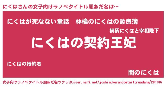 | 胡散臭い通販商品みたいなあだ名 | 『来世でも幸せになれる健康食品…その名も「にくは」』 |