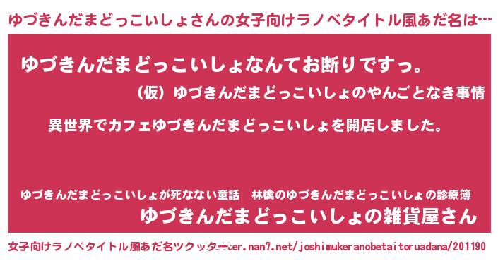 | 胡散臭い通販商品みたいなあだ名 | 『前代未聞の招き猫…その名も「ゆづきんだまどっこいしょ」』 |