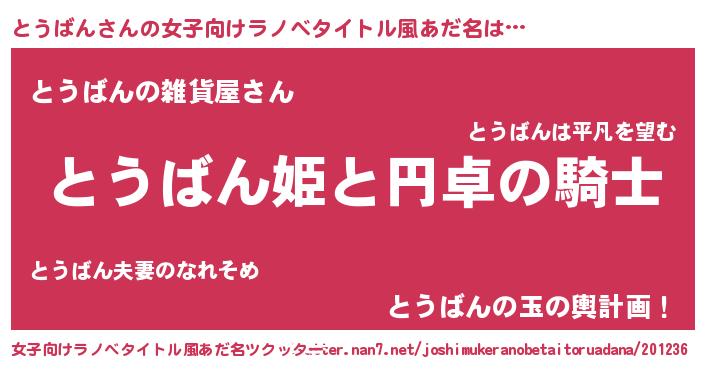 | 男性向けラノベタイトル風あだ名 | 『とうばんの憂鬱』 |