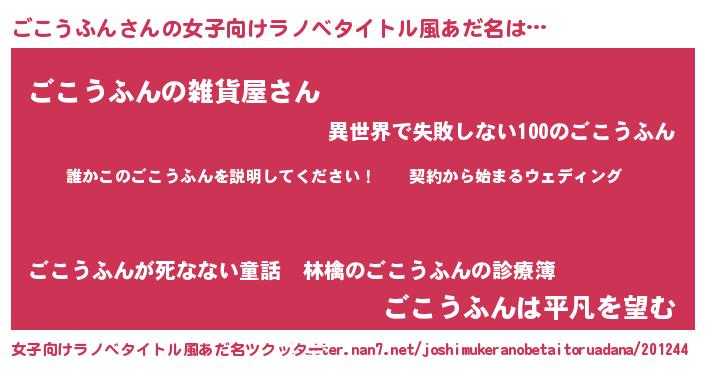 | 男性向けラノベタイトル風あだ名 | 『ゴコウフンアートオンライン』 |