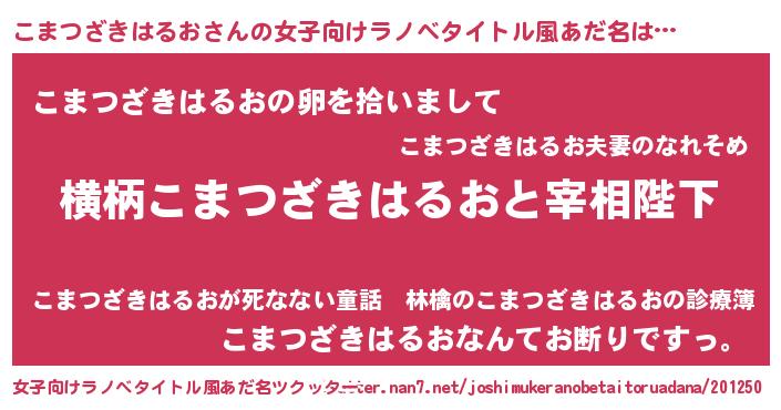 | 男性向けラノベタイトル風あだ名 | 『こまつざきはるおに滅ぼされるだけの簡単なお仕事です』 |