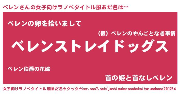 | 男性向けラノベタイトル風あだ名 | 『Re:ベレンから始める異世界生活』 |