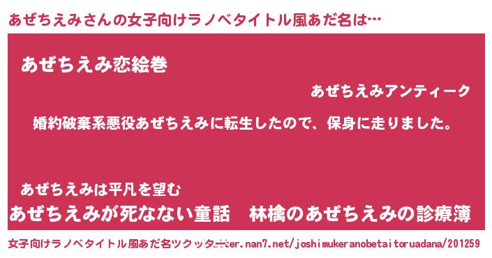 男性向けラノベタイトル風あだ名 | 『アゼチエミスレイヤー』 |