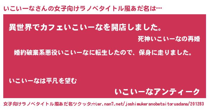 | 男性向けラノベタイトル風あだ名 | 『イコイーナスレイヤー』 |