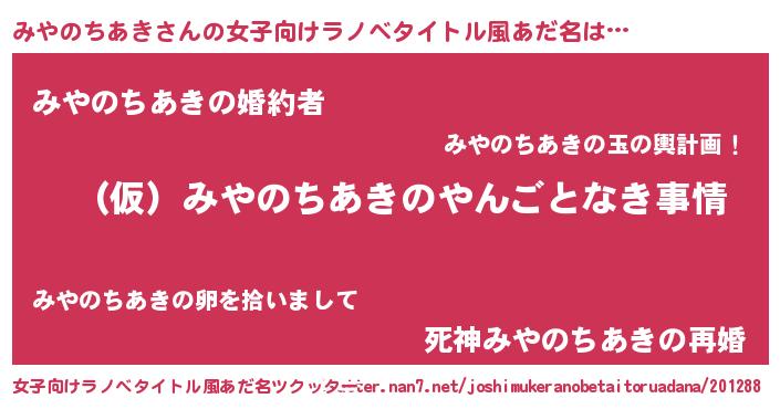 | 男性向けラノベタイトル風あだ名 | 『みやのちあきの憂鬱』 |