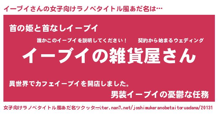 | 胡散臭い通販商品みたいなあだ名 | 『幸せが訪れる高級そうな絵画…その名も「イーブイ」』 |