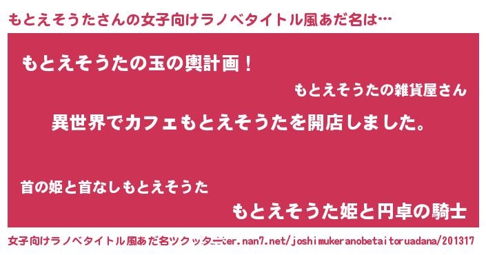| 胡散臭い通販商品みたいなあだ名 | 『前代未聞の健康食品…その名も「もとえそうた」』 |