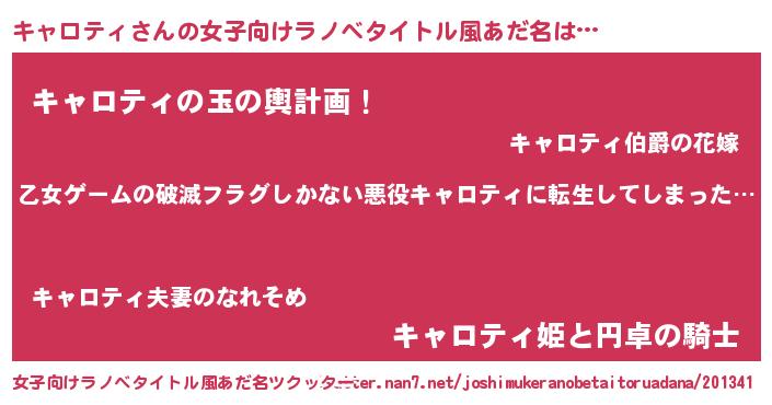 | 意味不明あだ名 | 『住所不定無職キャロティ(3歳)』 |