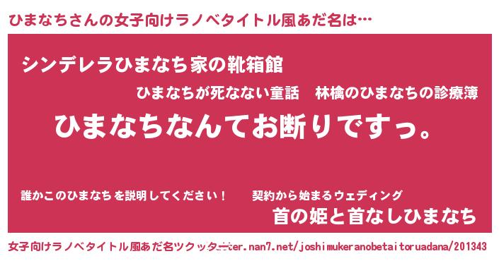 | 男性向けラノベタイトル風あだ名 | 『魔法科高校のひまなち』 |