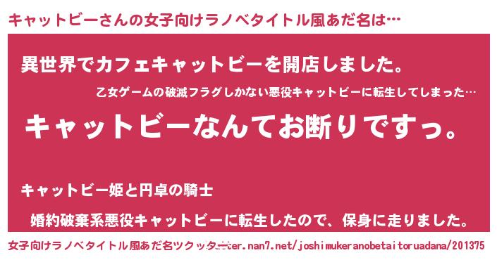| 意味不明あだ名 | 『自称キャットビー』 |