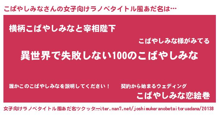 | 男性向けラノベタイトル風あだ名 | 『こばやしみなという概念が存在しない退屈な世界 』 |