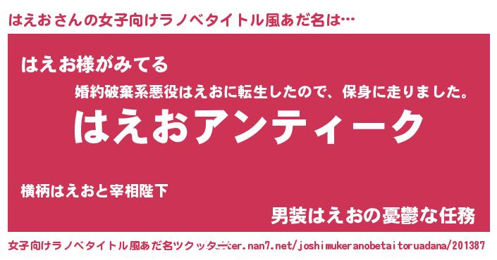| 男性向けラノベタイトル風あだ名 | 『魔法科高校のはえお』 |