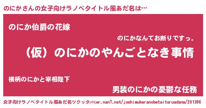 | 男性向けラノベタイトル風あだ名 | 『のにかの憂鬱』『魔法科高校ののにか』 |