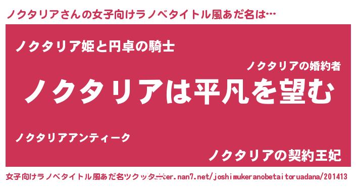 | 男性向けラノベタイトル風あだ名 | 『ダンジョンにノクタリアを求めるのは間違っているだろうか』 |