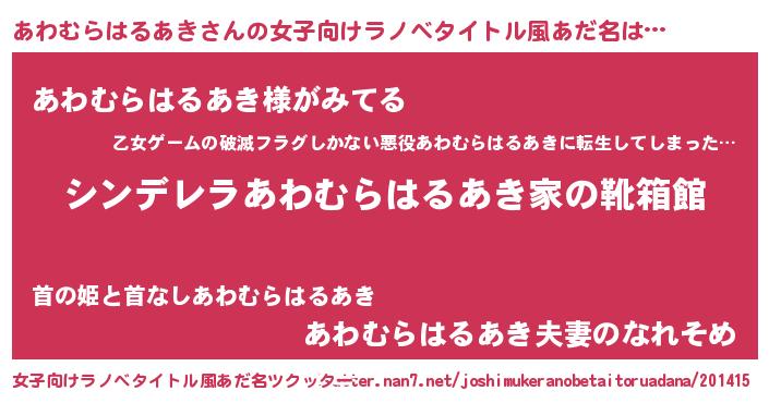 | 男性向けラノベタイトル風あだ名 | 『緋弾のアワムラハルアキ』 |