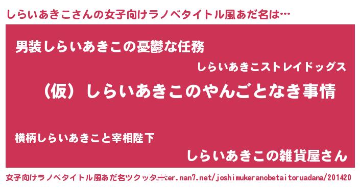 | 意味不明あだ名 | 『ペロリンしらいあきこ』 |