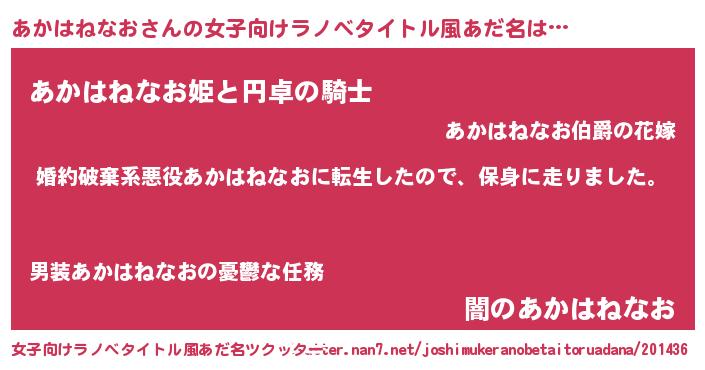 | 男性向けラノベタイトル風あだ名 | 『アカハネナオスレイヤー』 |