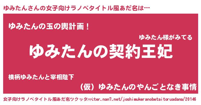 | 胡散臭い通販商品みたいなあだ名 | 『来世でも幸せになれる水素水…その名も「ゆみたん」』 |