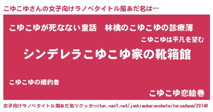 | 男性向けラノベタイトル風あだ名 | 『緋弾のコユコユ』『魔弾の王とこゆこゆ』 |