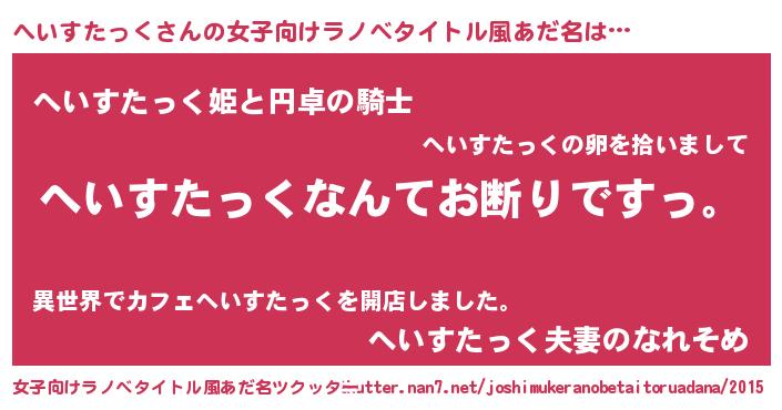 | 意味不明あだ名 | 『自称へいすたっく』 |