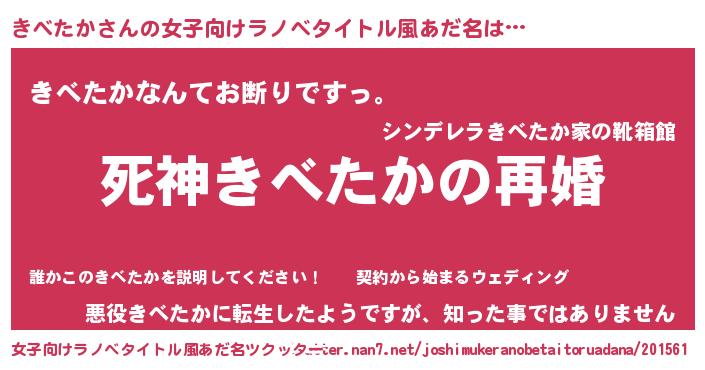 | 男性向けラノベタイトル風あだ名 | 『ノーゲーム・ノーキベタカ』 |