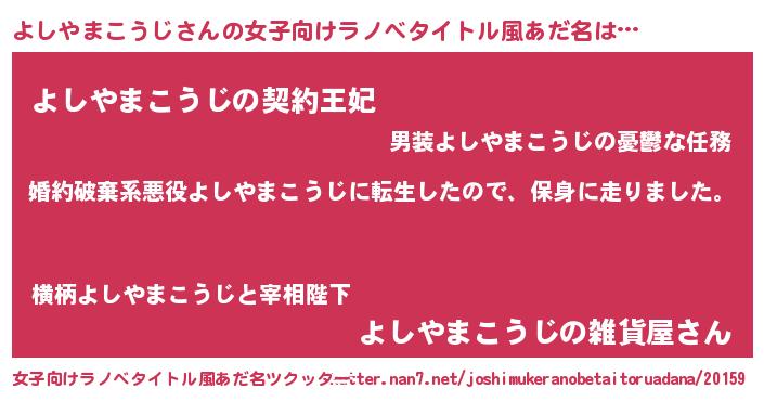 男性向けラノベタイトル風あだ名 | 『ヨシヤマコウジスレイヤー』 |