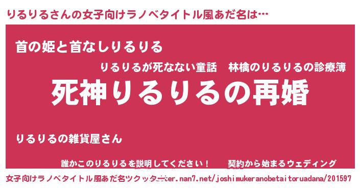 | 男性向けラノベタイトル風あだ名 | 『ノーゲーム・ノーリルリル』 |