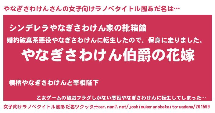 | 男性向けラノベタイトル風あだ名 | 『やはりやなぎさわけんの青春ラブコメはまちがっている 』 |