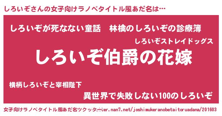 | 男性向けラノベタイトル風あだ名 | 『やはりしろいぞの青春ラブコメはまちがっている 』 |