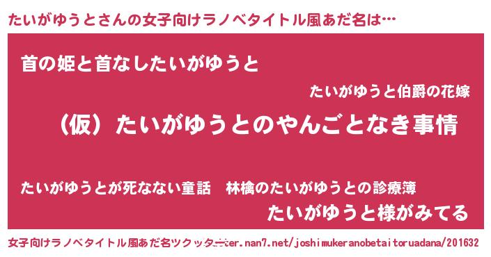 | 胡散臭い通販商品みたいなあだ名 | 『必ず成功する霊験あらたかなお札…その名も「たいがゆうと」』 |
