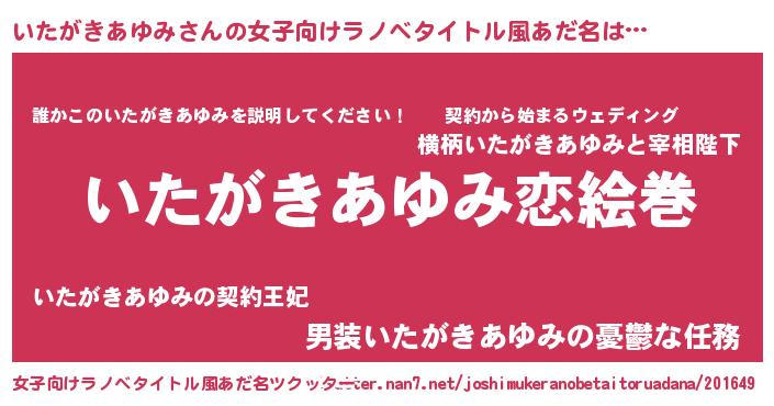 | 胡散臭い通販商品みたいなあだ名 | 『お金では代えられない隕石のかけら…その名も「いたがきあゆみ」』 |