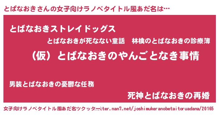 | 男性向けラノベタイトル風あだ名 | 『とばなおきの憂鬱』 |