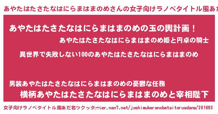 | 意味不明あだ名 | 『永久保存あやたはたさたなはにらまはまのめ』 |
