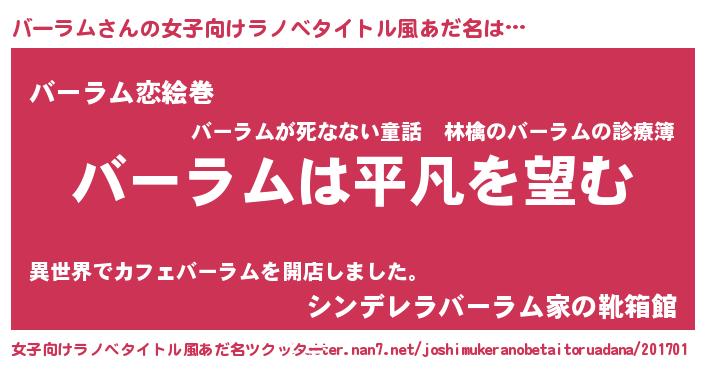| 男性向けラノベタイトル風あだ名 | 『ダンジョンにバーラムを求めるのは間違っているだろうか』 |