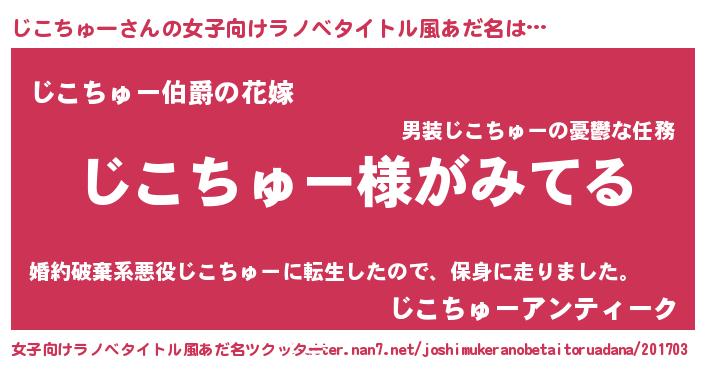 | ヘコむあだ名 | 『じこお』『豆乳』『じこにゅー』 |