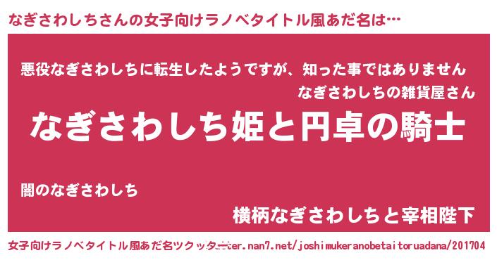 | 男性向けラノベタイトル風あだ名 | 『ナギサワシチアートオンライン』 |