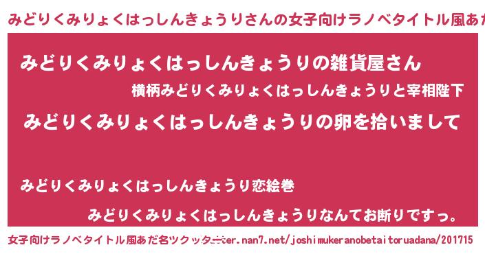 | 男性向けラノベタイトル風あだ名 | 『みどりくみりょくはっしんきょうりの嫁は女の子じゃないと思った?』 |