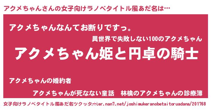 | 男性向けラノベタイトル風あだ名 | 『アクメチャンアートオンライン』 |