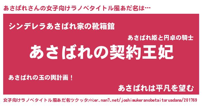 | 胡散臭い通販商品みたいなあだ名 | 『来世でも幸せになれる健康食品…その名も「あさばれ」』 |